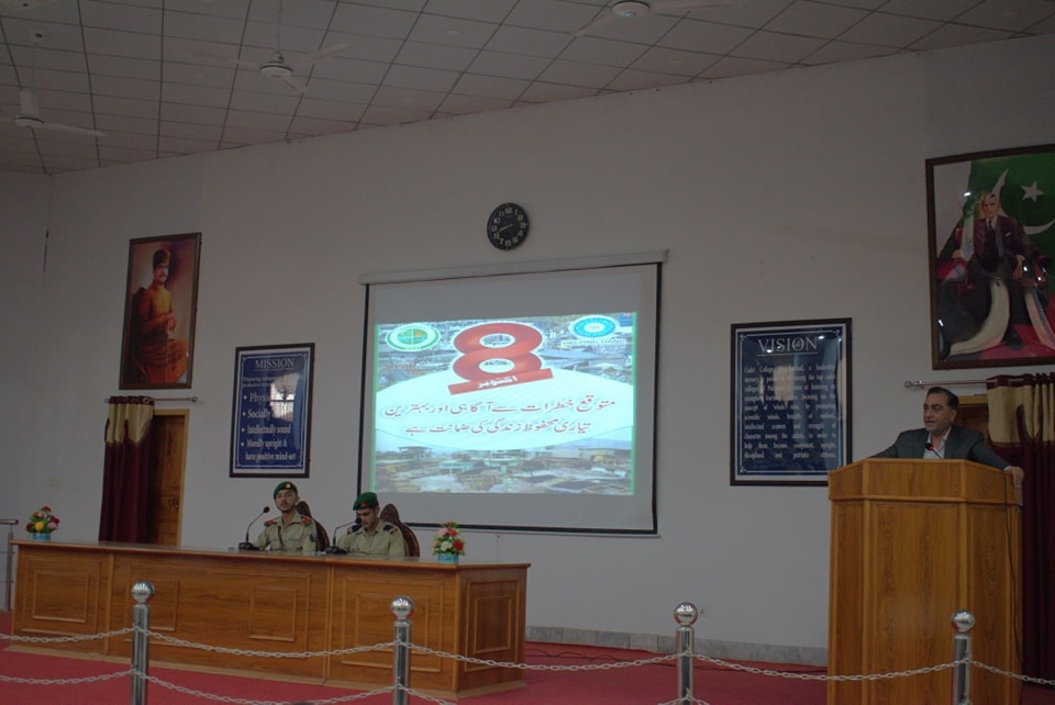 Humbled to Allah Almighty, Who has afforded me an opportunity and concurrently reposed enormous responsibility to lead somewhat a new educational institution. I recognize the relentless efforts of the Leadership, Notables and Local Community of the area who pursued and got the approval for establishment of the Cadet College. I appreciate the efforts made by the Project Directors to complete the infrastructure of the College as planned. I also value the exertions of my Predecessors, Faculty and Support Staff to operationalize the College and put the system in place, which is manifested in the College’s academic and extra / co-curricular outcomes. We will continue to further enhance and institutionalize the system already in place; related to human resources, training of the faculty in educational philosophy, child psychology, modern teaching techniques, etc, thereby creating an enabling environment of learning to transform the College into an efficient and smart Institution. Correctly focused on academic excellence, concerted efforts will be directed on character building, physical fitness with mental agility to shape the personality, which is morally sound, socially correct and emotionally stable with dynamic leadership qualities. We will endeavour to complete the remaining infrastructure of the College through Azad Government of the State of Jammu & Kashmir. Wish to work in harmony duly concentrating on Parents-Teacher-Cadets triangle. |